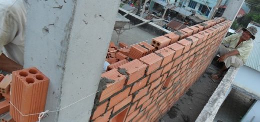 + Tường xây lớp cuối cùng ở vị trí tiếp giáp giữa tường và dầm, sàn thì phải xây xiên